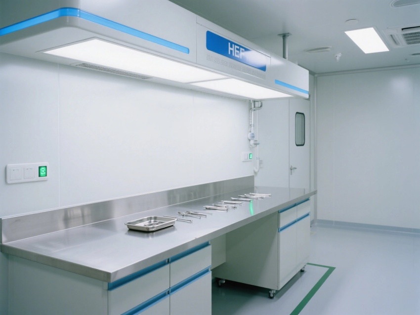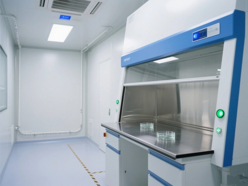 操作區配備不銹鋼生物安全柜、負壓隔離艙等專業設備,透明觀察窗與電子顯示屏實時監控溫濕度(控制在22±2℃)及壓差(維持10Pa正壓)。走廊設置風淋室與傳遞窗,確保物料與人員進出的潔凈過渡,全方位契合醫療器械GMP生產規范。